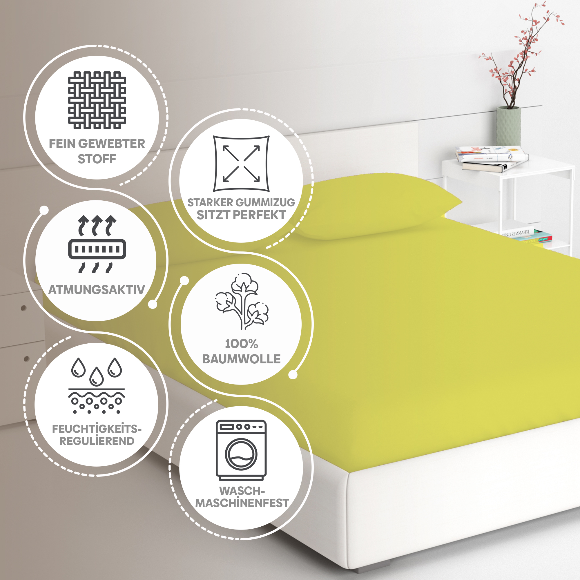 Dank des weichen Jersey-Materials fühlen sich unsere Spannbettlaken besonders angenehm auf der Haut an. Sie sind pflegeleicht, farbecht und behalten auch nach vielen Wäschen ihre Passform – ideal für den täglichen Einsatz in Schlafzimmer, Gästezimmer oder Hotel.